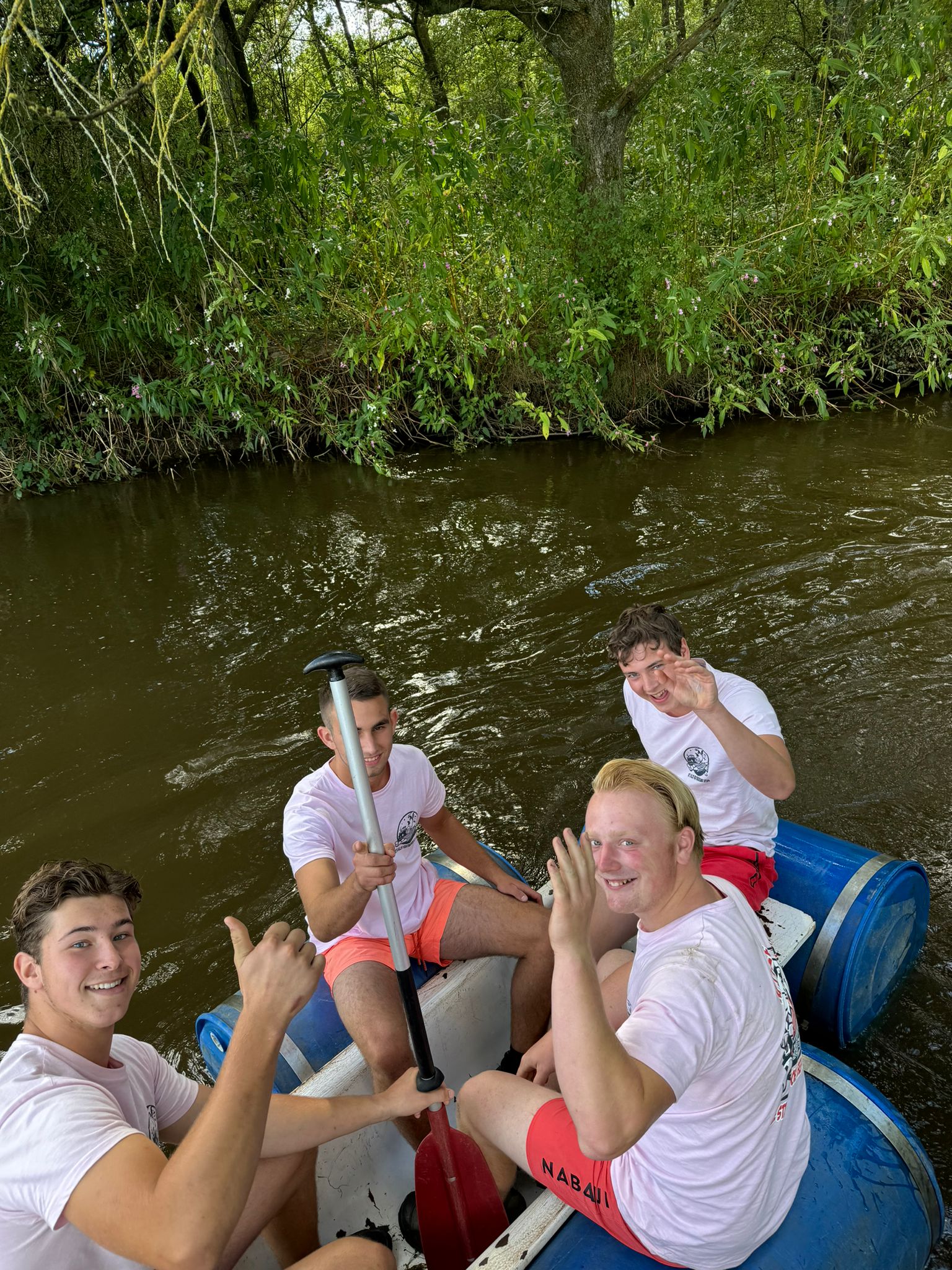 ‘S avonds aten ze met zijn alle pizza en stookten ze de stookton op. Zondag mochten ze samen met de leden gaan badkuipvaren